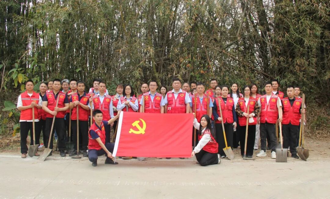 3月20日,城科集团组织50名党员及干部职工前往清新区太平镇清大南村,开展义务植树活动,共有60棵新苗扎根沃土,为乡村生态环境增绿添彩。