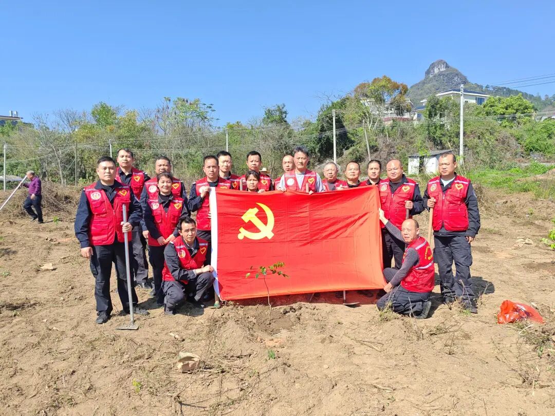 3月11-20日,保安公司党委组织下属各党支部及退役军人志愿服务队,分赴清城区岗头村、赤岗村、英德市大站镇菜洲村委下缎村、连州市连州镇大湾新村,开展“绿美兴村”主题植树活动。桃树、龙眼、黄皮、杜鹃、风铃木……490棵乡土树种扎根乡村,退役军人与党员志愿者并肩挥锹,以实际行动播撒绿色希望,用奉献精神擦亮“绿美兴村”底色。