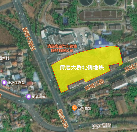 本次招商地块位于清远市清城区清远大桥北侧,清远粤宝宝马4S店南侧,西至城西大道北,南至环城三路。地块现状为空地,面积约1.52万平方米,地面有基础硬底化。
