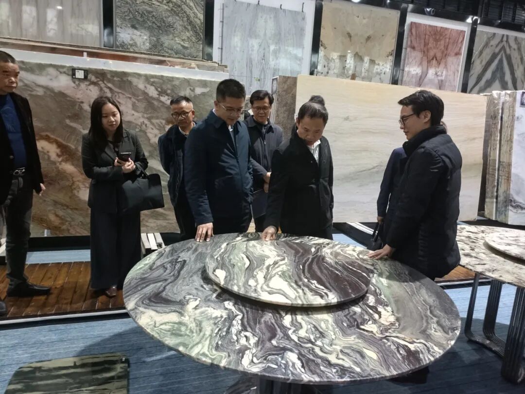 考察团首站抵达泉州市考察石材产业发展情况。在东星集团,考察团深入了解企业发展历程、产业布局及技术创新成果,到石材展厅、智能制造车间、石粉综合利用、石塑包装配套、智能仓储管理等项目参观,系统学习石材精深加工、石材交易模式、仓储物流体系等方面先进经验。在宇川石业公司,考察团到生产基地与专业市场实地考察,就板材加工、品牌建设等展开交流。在泉州市考察期间,考察团向拜访企业介绍了德晟集团在矿产业务方面的发展成果,围绕在清远共建加工基地、引入技术合作、开发本地项目开展具体合作商谈。