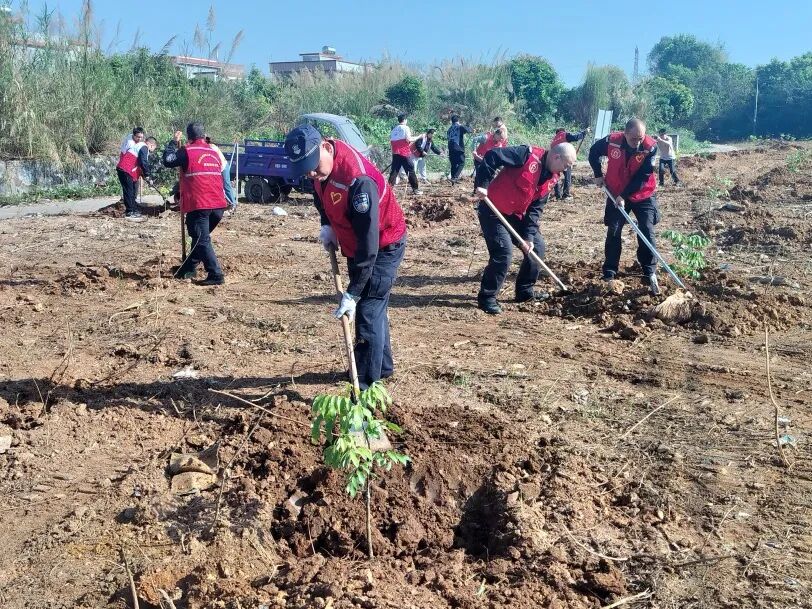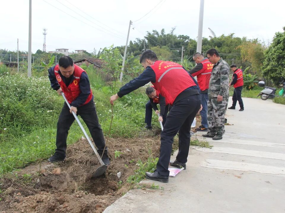 3月11-20日,保安公司党委组织下属各党支部及退役军人志愿服务队,分赴清城区岗头村、赤岗村、英德市大站镇菜洲村委下缎村、连州市连州镇大湾新村,开展“绿美兴村”主题植树活动。桃树、龙眼、黄皮、杜鹃、风铃木……490棵乡土树种扎根乡村,退役军人与党员志愿者并肩挥锹,以实际行动播撒绿色希望,用奉献精神擦亮“绿美兴村”底色。